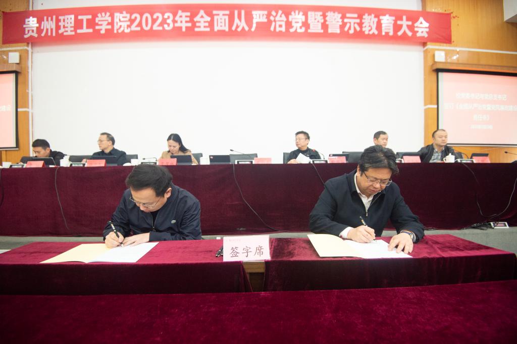 3月23日上午,贵州理工学院召开2023年全面从严治党暨警示教育大会。大会主要任务是:坚持以习近平新时代中国特色社会主义思想为指导,深入贯彻落实党的二十大关于全面从严治党战略部署,贯彻落实二十届中央纪委二次全会精神、十三届贵州省纪委二次全会精神,总结2022年工作,对2023年全面从严治党工作进行安排部署,科学分析全面从严治党新形势,面向新征程、部署新任务、开创新局面,坚定不移推动全面从严治党向纵深发展。校领导苏向东、胡兴灿、贺梦依、林长松、张开智,党委委员左柏州、李朋出席会议。