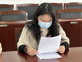 与会人员集中学习了党的二十大报告里面关于“坚定不移全面从严治党,深入推进新时代党的建设新的伟大工程”以及“科教兴国、人才强国”两部分内容,杨涛、陈梦玲、刘悦、张李楠、吴仙同志相继作了交流发言。