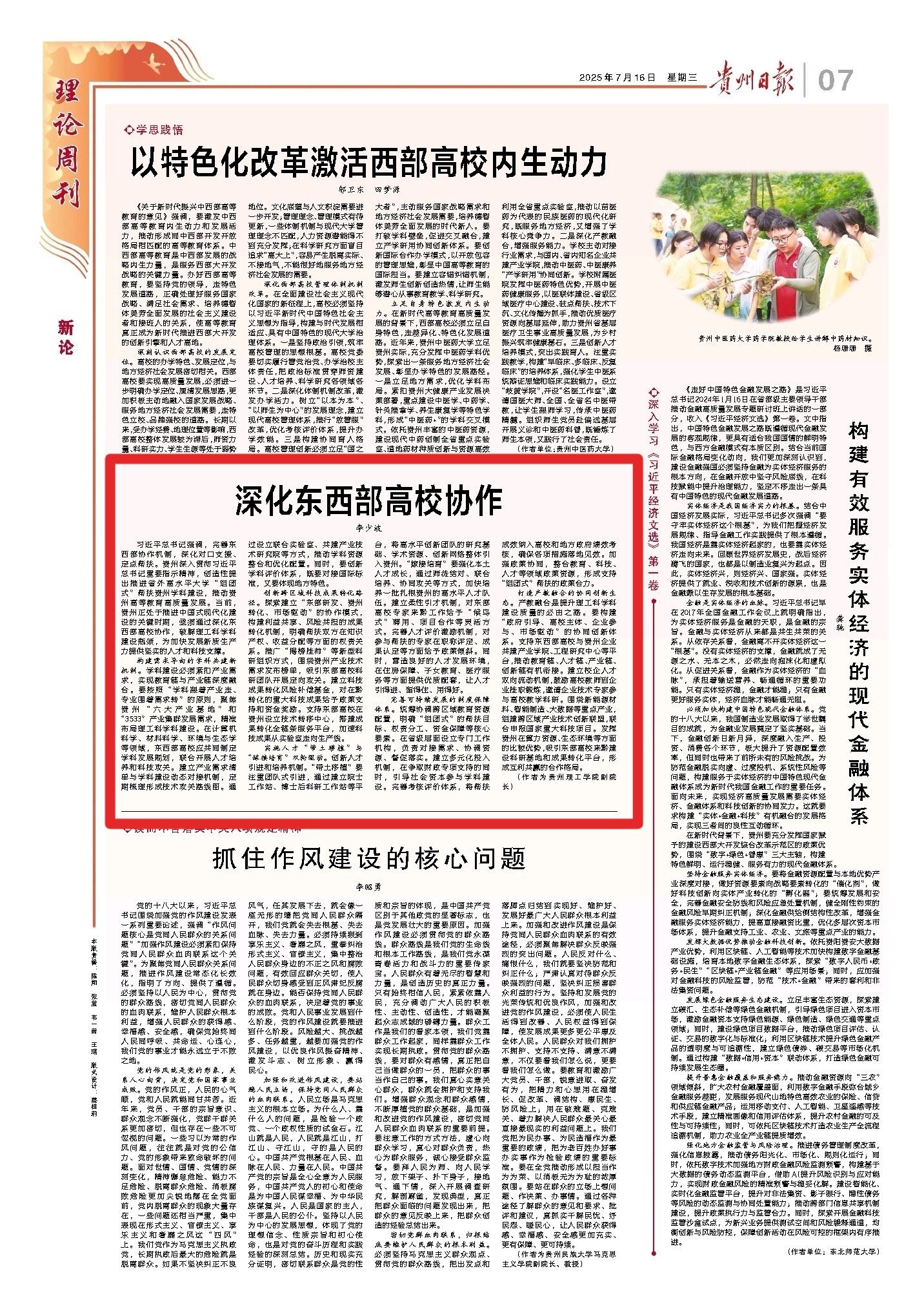 7月16日,《贵州日报》刊发贵州理工学院党委委员、副院长李少波理论文章《深化东西部高校协作》,全文如下: