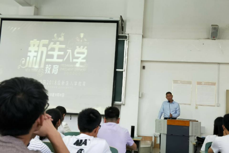 9月2日,经济管理学院在三教415教室开展2018级新生入学教育,院党总支书记杨雁,院长杨岗营,副院长邹勇、周曙东,团总支书记王凯,辅导员白桂霞、吴艳,18级各班班主任,以及经济管理学院全体新生参加宣讲活动。