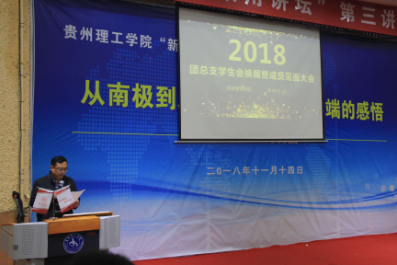 (本网讯 经济管理学院 王菲/文 赵永健/图)2018年11月15日,经济管理学院于逸夫小礼堂举办院团总支学生会换届大会,党总支书记杨雁、副书记邹勇、学生科科长王凯、辅导员白桂霞、团总支全体成员及16、17、18级各班班委出席会议,活动由李佳琪主持。