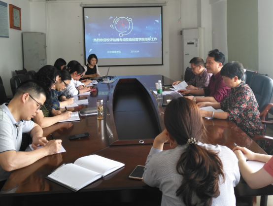 (本网讯 经管学院 王雄瑾/图文)4月24日,我校评估工作督办组聂爱国、袁艺、曾诚一行三人到经济管理学院就毕业论文(设计)工作进行评估指导,李静副院长向督办组一行表示了热烈欢迎,全体毕业论文(设计)指导老师参加了指导工作会议。