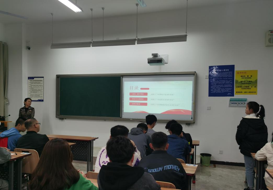 本网讯(经管学院 吴艳/文图)为引导我院20级学生深刻理解“四史”内容,从对“四史”的学思践悟中明晰历史使命、勇挑时代责任,4月12日晚,经济管理学院党总支书记杨雁为20级学生开展“四史”教育。