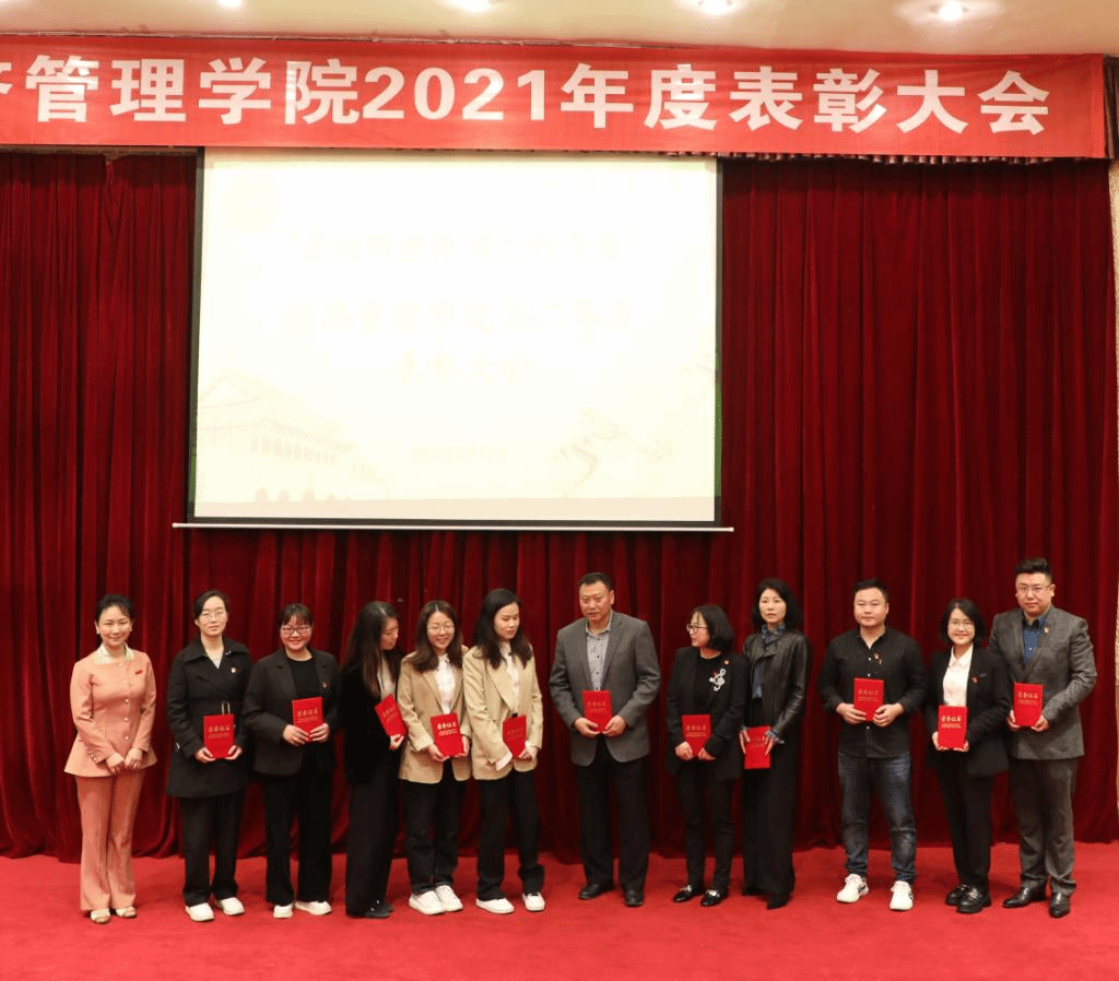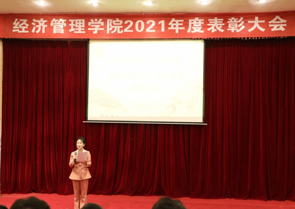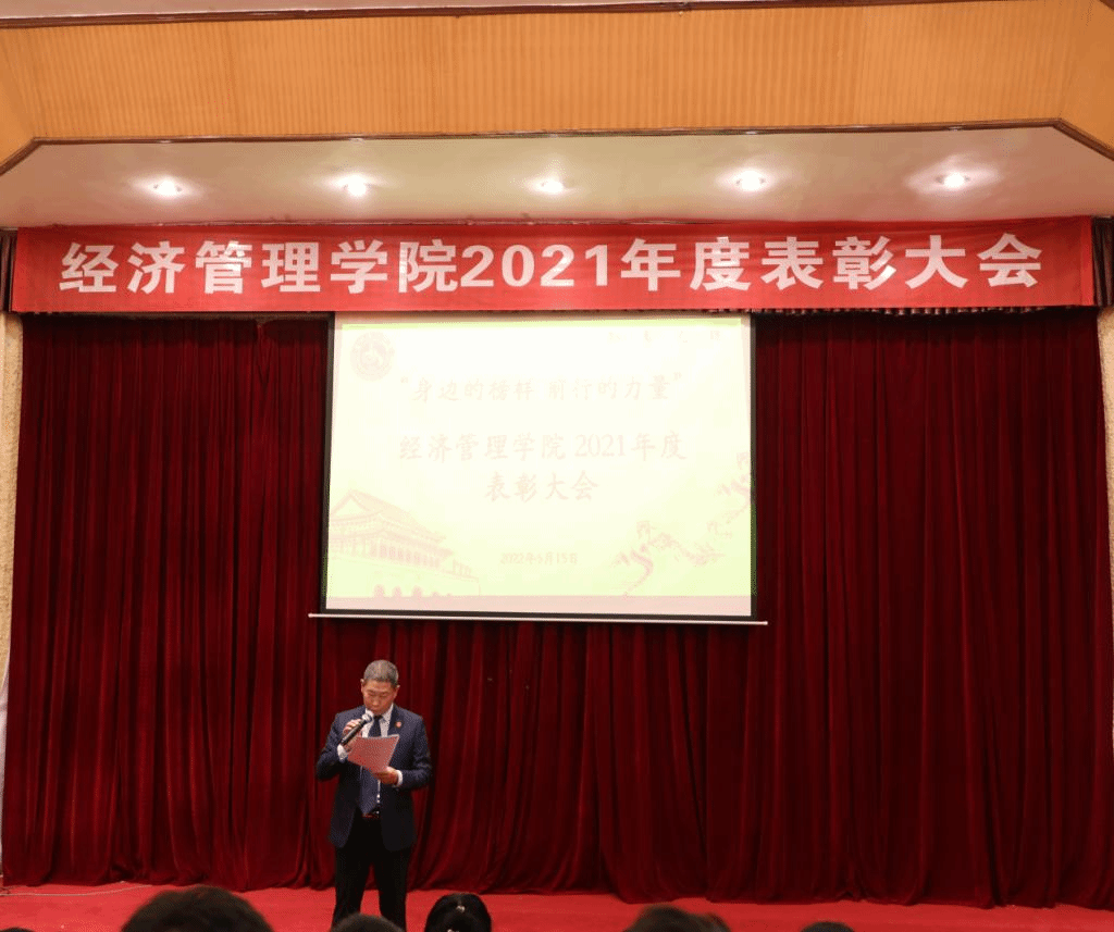 会上,院长杨岗营宣读了《关于表彰经济管理学院2021年度先进集体、先进个人的决定》,以及学院2021年度获得校级以上表彰的集体和个人名单。