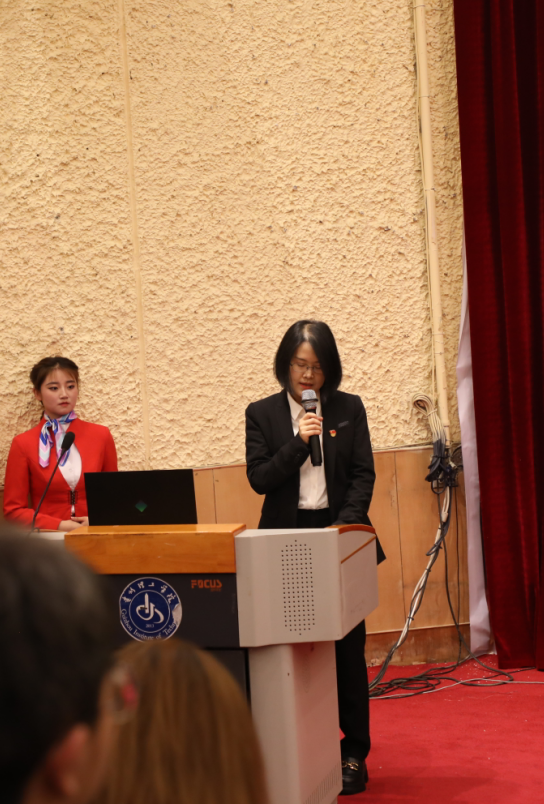 优秀教师代表杜群、优秀学生代表吴佐霞分别发言。