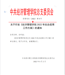 学院制定了《经济管理学院2022年抗击疫情工作方案》,推动党员教师下沉班级担任班级导师,发挥优势做好学生思想引导和学业指导工作。同时发动学生党员和入党积极分子投入到志愿服务中,在抗击疫情的大考中不断增强政治意识和提升工作能力。