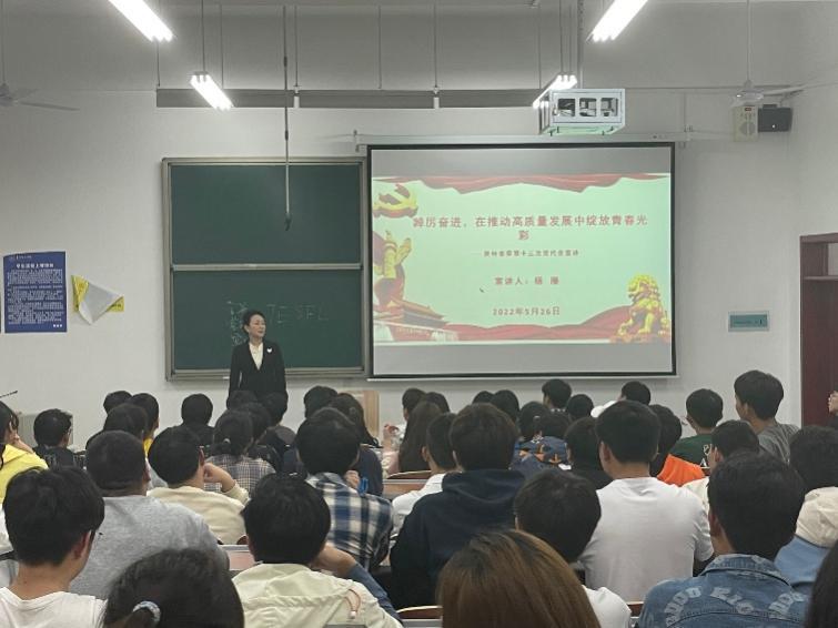 本网讯(经济管理学院 文/曾思盈 图/田陈)为更好的学习宣传贯彻贵州省第十三次党代会精神,2022年5月26日,经济管理学院党总支书记杨雁在贵安校区作题为“踔历奋进,在推动高质量发展中绽放青春光彩”宣讲,经济管理学院21级辅导员白桂霞及21级全体同学参加此次宣讲。
