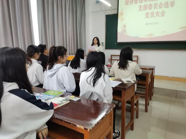本网讯(经济管理学院 文图/李雪梅)2022年5月16日,经济管理学院第二学生党支部在3教107教室召开党员大会,选举支部第一届委员会委员,党支部全体党员参加会议。