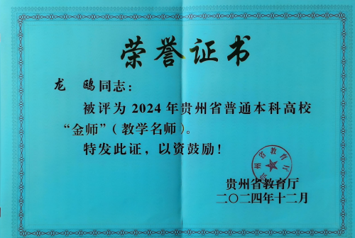 我院龙鸥副教授荣获2024年贵州省普通本科高校“金师”(教学名师)称号