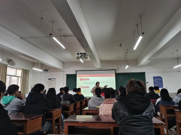 11月30日,经济管理学院学生科副科长张翊在3313教室对十七期团校培训人员、各班班长以及团干部开展“学习贯彻党的第十九届六中全会精神”宣讲。