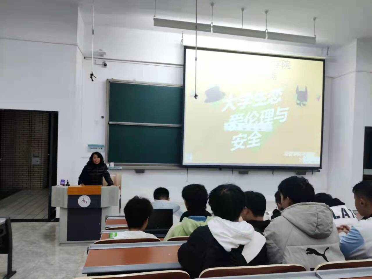 本网讯(经济管理学院 文图/张友馨)为促进新生心理健康,引导新生树立正确的恋爱观,2021年11月16日晚,经济管理学院在贵安校区G1109教室开展“以互爱为前提,正确对待爱情”心理讲座。讲座由马晓丽老师担任主讲,学院2021级全体新生参加讲座。