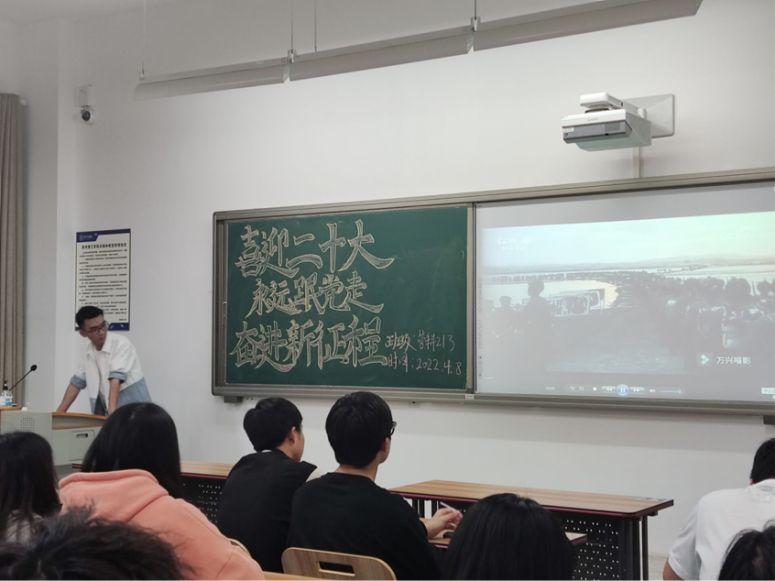 管科213班团支部李青青同学组织同学们进行“迎接二十大”的知识问答赛,并通过海报绘制、书写祝福语等形式表达对二十大的期待,支部同学参与度高,活动现场气氛活跃,整体效果好。