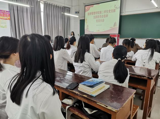 本网讯(经济管理学院 文图/李雪梅)2022年5月16日,经济管理学院第二学生党支部在3教107教室召开党员大会,选举支部第一届委员会委员,党支部全体党员参加会议。