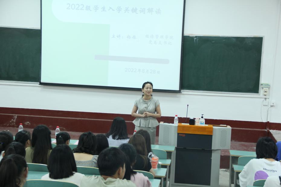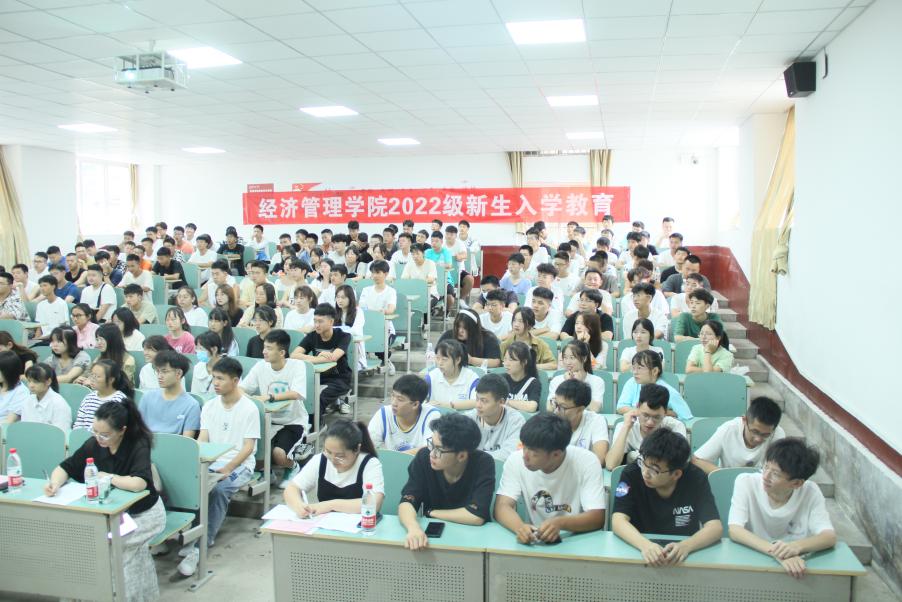 本网讯(经济管理学院 文/敖乐其 图/刘安报)新生入学教育是整个大学教育的起点,是新生大学生涯的第一课。8月28日上午,经济管理学院在蔡家关校区开展2022级新生入学教育,学院领导杨雁、杨岗营、李静、方燕出席,2022级新生辅导员、班主任及225名新生参加。