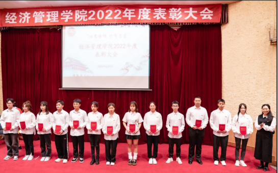 会上,杨岗营宣读了《关于表彰经济管理学院2022年度先进集体、先进个人的决定》,以及学院2022年度获得校级以上表彰的集体和个人名单。