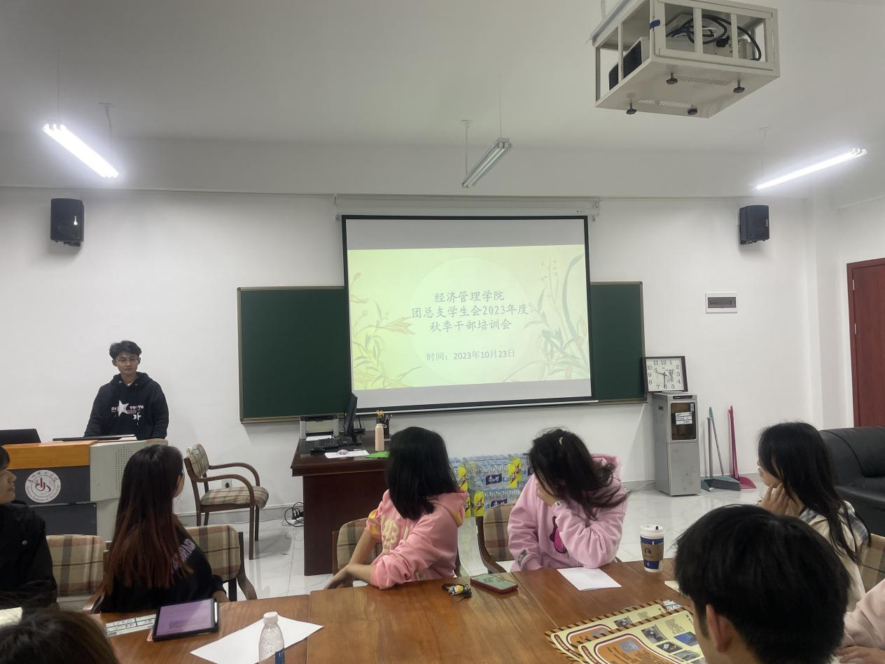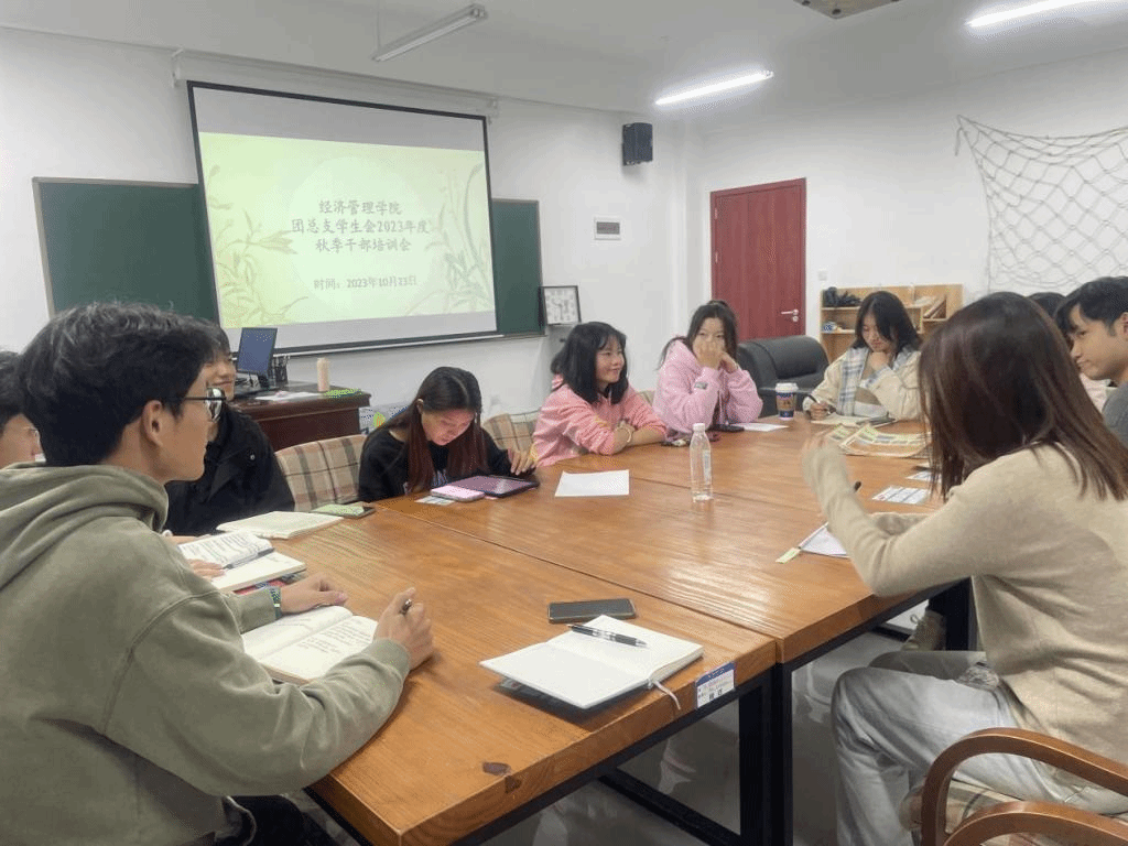 本网讯(图/杨应勇 文/崔太顺、袁竟珊)为了增强干部能力,提升工作效率,经管学院于10月23日在C04-539展开了秋季干部培训会,经济管理学院团总支学生会主席团成员张友馨、杨小慧、罗小倩、副团支书王禹以及各部门学生干事参加本次培训会。