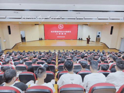 本网讯(经济管理学院 吴伟/文 潘颖/图)8月30日上午,经济管理学院在蕴华楼小礼堂举行2025级新生入学教育大会,帮助新生快速适应大学生活、明确成长方向。学院领导周红、王凯、刘朝、方燕出席并授课,学生科科长张翊、新生班主任张雨龙及顾艳,与全体2025级新生参会,辅导员白桂霞主持会议。