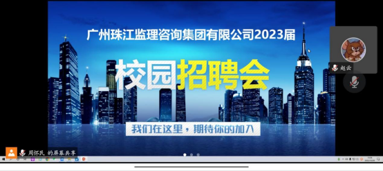 本网讯(经济管理学院 文图/袁竟珊)“大道之行也,天下为公;选贤与能,讲信修睦。”2022年10月28日,经济管理学院开展广州珠江监理咨询集团有限公司线上专场招聘活动,学院2019级工程管理、工程造价100余名学生参加招聘活动。