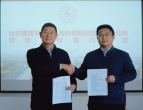 (本网讯经济管理学院文/袁竟珊、王禹、刘安报图/胡扬青)弘扬“谋求共同发展的‘上海精神’”,彰显“携手共行天下大道”的胸怀担当,2023年3月31日经济管理学院与上海黔泰股权投资基金公司举行校企合作签约仪式。参会人员有我院院长杨岗营、副院长刘朝、学生科副科长张翊、辅导员白桂霞,上海黔泰股权投资基金公司副总裁张胤珺、市场专员兰智鹏。