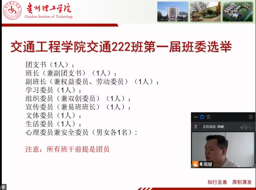 各班班主任和学生还分别召开班会选举班委,召开疫情专题会议,各班主任通过带领同学们学习学习手册上有关学生管理的相关制度和文件,如《贵州理工学院学生行为规范》、《贵州理工学院学生管理规定》、《贵州理工学院学生宿舍管理规定》等文件,帮助同学们调整心态,安心学习。