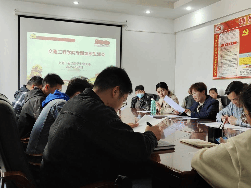 (本网讯杨昌鹏/文 廖富恒/图)为进一步提升支部凝聚力,明确未来努力方向,2022年3月9日,交通工程学院学生党支部组织全体学生党员在学院会议室召开2021年度组织生活会和民主评议党员活动。组织生活会由党支部书记苏利荣同志主持,支委及全体学生党员参加。