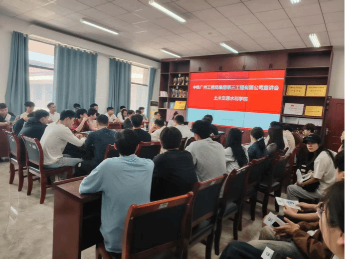 本网讯(土木交通水利学院 图/“智见”媒体中心 文/鲁梦玥)2026年4月13日下午,土木交通水利学院在敏行楼3547,举办了中铁广州工程局集团第三工程有限公司2026届校园招聘宣讲会,土木交通水利学院部分学生参加。