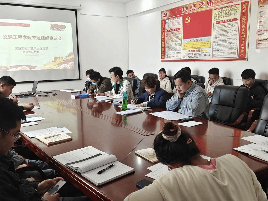 (本网讯杨昌鹏/文 廖富恒/图)为进一步提升支部凝聚力,明确未来努力方向,2022年3月9日,交通工程学院学生党支部组织全体学生党员在学院会议室召开2021年度组织生活会和民主评议党员活动。组织生活会由党支部书记苏利荣同志主持,支委及全体学生党员参加。