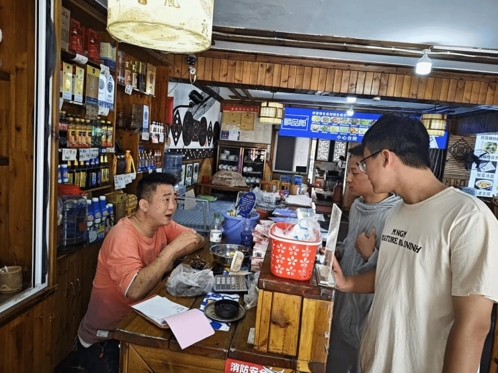 同时,团队成员还走访了当地食宿商家等人员,了解其经营现状及所面临的困难,从全域旅游和大学生喜欢的旅游图景视角与商家探讨了未来的经营趋势。