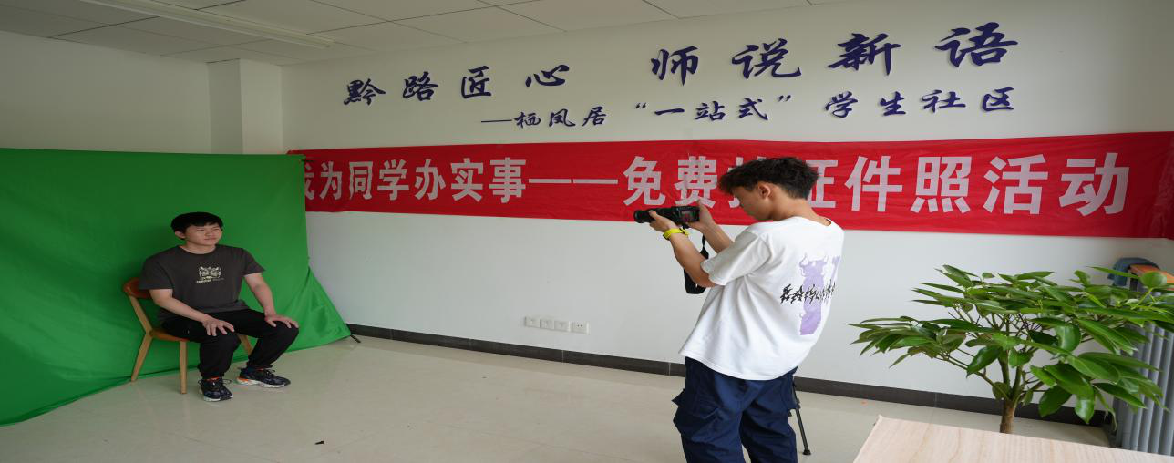(本网讯 交通工程学院 图文/胡建松 )为切实解决学生在求职、考试报名等场景中证件照拍摄需求,2025年5月22日下午2点半,栖凤居五号公寓3楼活动室开展“我为同学办实事——免费拍证件照”活动。本次活动由学工部学生科牵头,为参与同学提供专业拍摄服务及免费纸质版照片,吸引逾100名学生踊跃参与。