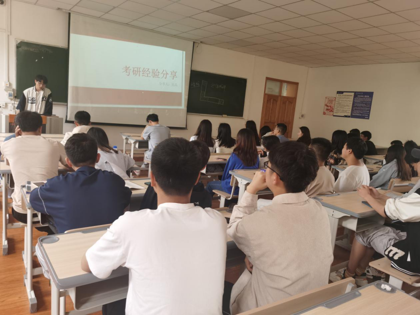 被中南林业科技大学录取的2016级学生范勋娥、被东北林业大学录取的2017级学生曲嘉博、被西京学院录取的2017级学生王兵兵、被昆明理工大学院录取的2018级学生吴品等4名2022年成功考研“上岸”的同学作为此次分享会主讲人,帮助大二、大三学生进一步明确考研目标,掌握考研技巧,激发考研热情。