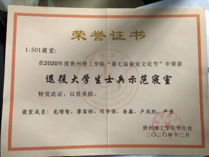 编者按:为进一步落实党和国家有关加强退役军人事务工作的相关要求,不断加强学校退役复学大学生士兵服务管理工作,推动学校基层武装工作高质量发展,尤其是进一步发挥退役大学生群体在学校治理、基层党团组织建设中的积极作用,贵州理工学院组织部、武装部、校团委于近期联合开展了遴选优秀退役大学生士兵担任“兵支书”活动,现将工作中发现的一些先进典型事迹进行连续报道。
