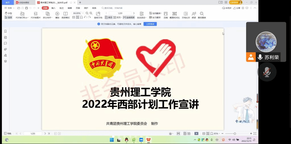 在会议中,苏利荣从什么是西部计划、西部计划专项、招募要求、流程及时间等八个方面全面介绍西部计划的主要内容。西部计划专项分为国家专项和地方专项两大类,涉及7个服务项目,但是针对贵州理工学院只涉及基层青年工作、基层社会管理和服务新疆三个项目。她还针对乡村教育、乡村建设、服务新疆、医疗护理以及西部计划报名条件与流程、基本政策与保障,岗位分配,服务期满后的优惠保障政策等相关内容进行了讲述。
