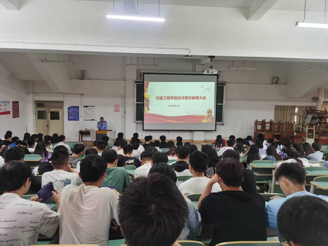 本网讯(交通工程学院 图/文 周鹏)为进一步增强在校学生的法治观念,提高反诈防骗自我保护意识和能力,强化校地联合打击治理电信网络诈骗防范工作,2022年6月10日下午2点30分,交通工程学院在三教416教室举行“反诈警示教育大会”。贵阳市公安局云岩分局金关派出所民警张蓝天受邀到场进行反诈讲解,学院2019级、2020级全体同学参与。