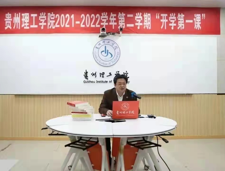 本网讯(交通工程学院 图/文 苏利荣)2月28日早上8点整,贵州理工学院2022年春季学期“开学第一课”在蔡家关校区第三教学楼翻转教室“云端”开讲,党委副书记、校长苏向东教授给2018级-2021级全体学生授课,宣讲国发2号文件。全校师生拥抱新学期,一起向未来。