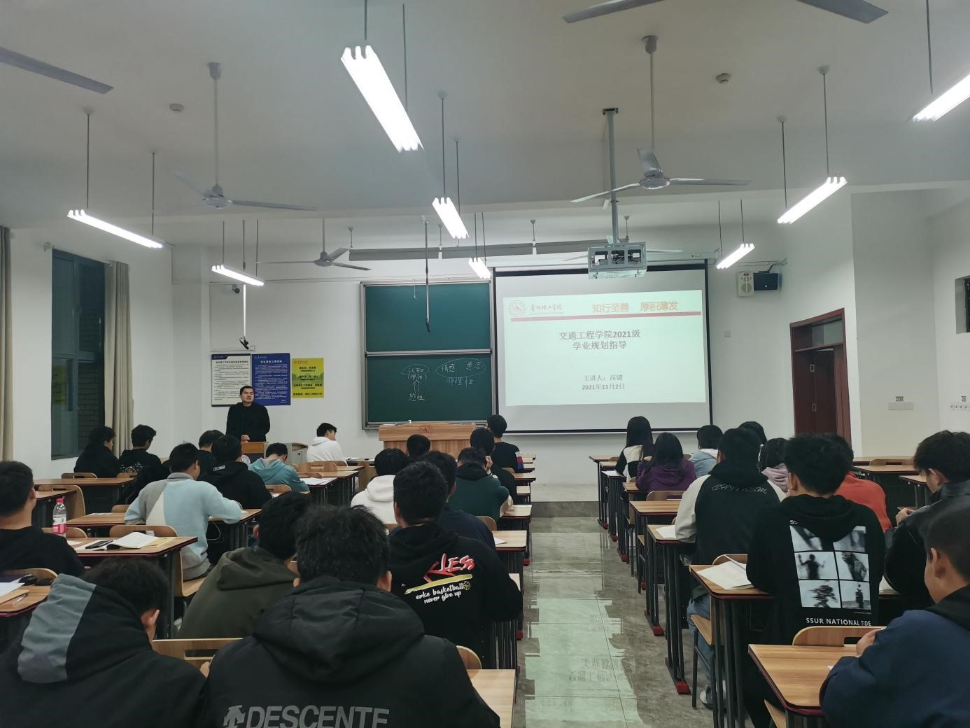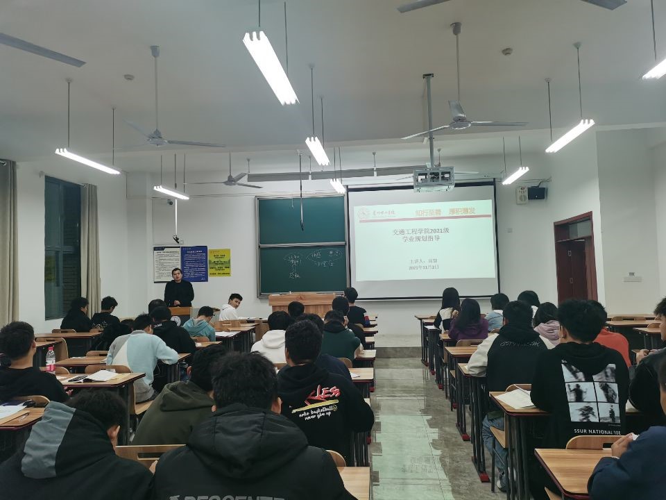 (本网讯交通工程学院图文/丰蕊)为帮助2021级大学新生尽早适应大学生活,科学正确地做好学业规划,2021年11月2日,交通工程学院高键老师面向2021级全体同学开展以“未雨绸缪 科学规划未来”为主题的学业规划讲座。