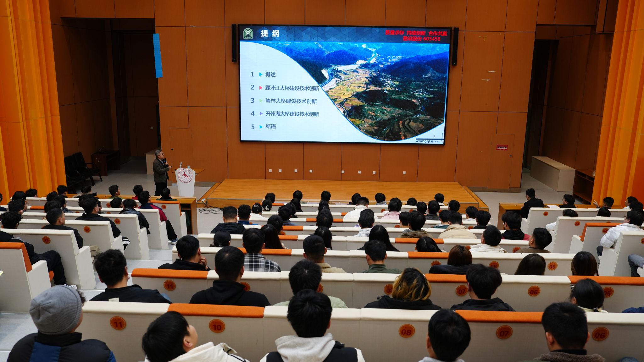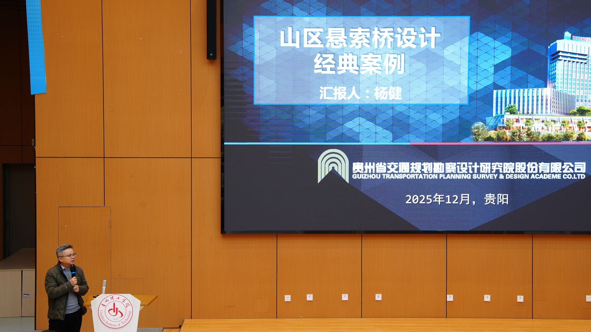 (本网讯 交通工程学院 图文/胡建松)为深化产教融合,助力卓越工程人才培养,12月10日晚7点,由贵州理工学院交通工程学院举办的“卓越工程师讲堂”在图书馆一楼报告厅顺利进行。本次讲座特邀贵州省交通规划勘察设计研究院股份有限公司总工程师、国家卓越工程师、古斯塔夫·林德撒尔奖获得者杨健担任主讲嘉宾,学院领导、专业教师及学生代表参加活动,活动由学院副院长黄政主持。