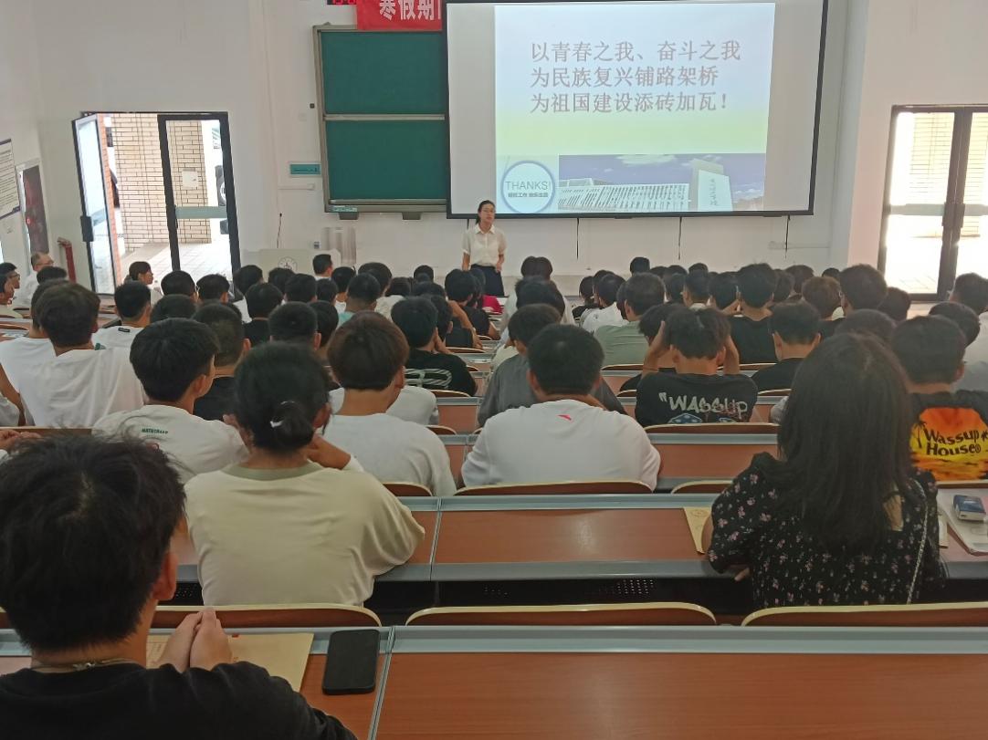 学教育伊始,学院院长张文利致辞,她对新生的到来表示热烈欢迎,并简要介绍了学院的历史沿革、师资力量以及学科建设情况,重点就交通建设发展与学科人才培养方面帮助同学们了解专业。通过生动的讲解,让新生们对学院有了更深入的了解,增强了他们的专业认同感和归属感。张院长希望新生们能够珍惜大学时光,树立远大理想,努力提升专业素养,为将来成为社会栋梁之才打下坚实基础。 随后,学院党总支书记黄念庆以《坚定理想信念,努力成长成才》为题给同学们深入浅出循循善诱讲述如何爱国荣校,追求人生理想和目标。他强调大学不仅是获取知识的殿堂,更是锤炼品格的重要时期。他希望同学们能够珍惜大学时光,努力提高专业水平,明确目标、刻苦钻研、博闻强识,号召大家坚持严格的自我要求和不懈的自我磨砺,成长为理想中的自己。 此外入学教育还特别安排了安全教育环节。由党总支副书记钟银星老师作详细讲解,她从校园安全知识,包括防火防盗、交通安全,网络安全、防溺水,防电信诈骗等方面,以生动的案例和学校真实的数据叮嘱同学们要时刻保持警惕,增强自我保护意识,提高安全防范意识。