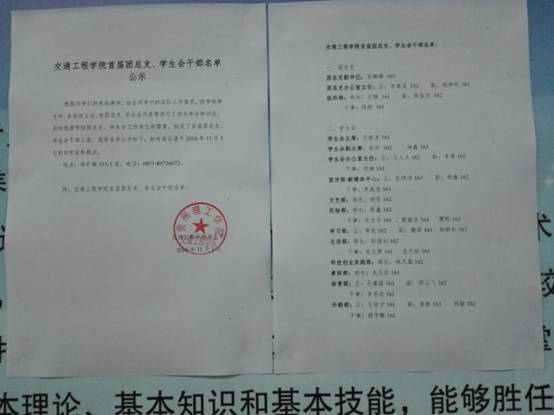 公示期间,无学生对竞选评定结果表示异议,交通工程学院于11月4日正式下文,聘用安娜娜、王轶多等35人为交通工程学院第一届团总支学生会成员。