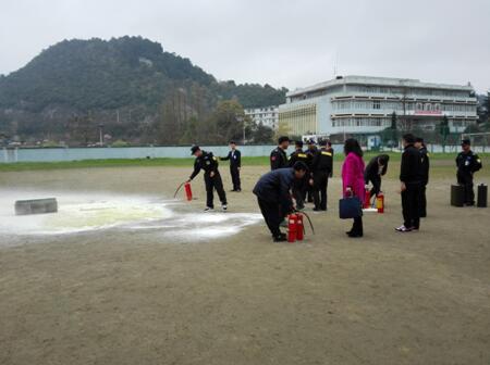 教室逃生演练成功之后,我院师生又在沙地足球场集合,保卫科的老师为我院师生讲解了灭火器的使用原理以及相关的注意事项,并亲自演练了灭火器的使用方法;在认真听讲及观摩后,学生们亲自体验了现场灭火的过程。