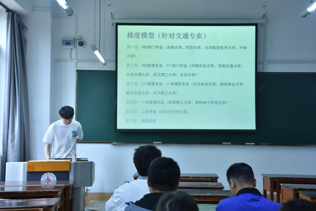 本网讯(交通工程学院 图文/沈冬冬)为加强学风建设,帮助同学们增强考研信心,合理择校,科学应对2024届考研,2023年4月14日上午10点,交通工程学院在3-108教室举办2024届考研学生经验分享会。学院两位今年“上岸”的交通191班王毓文、柏宇栋同学受邀分享经验,2024届部分考研学生参加。