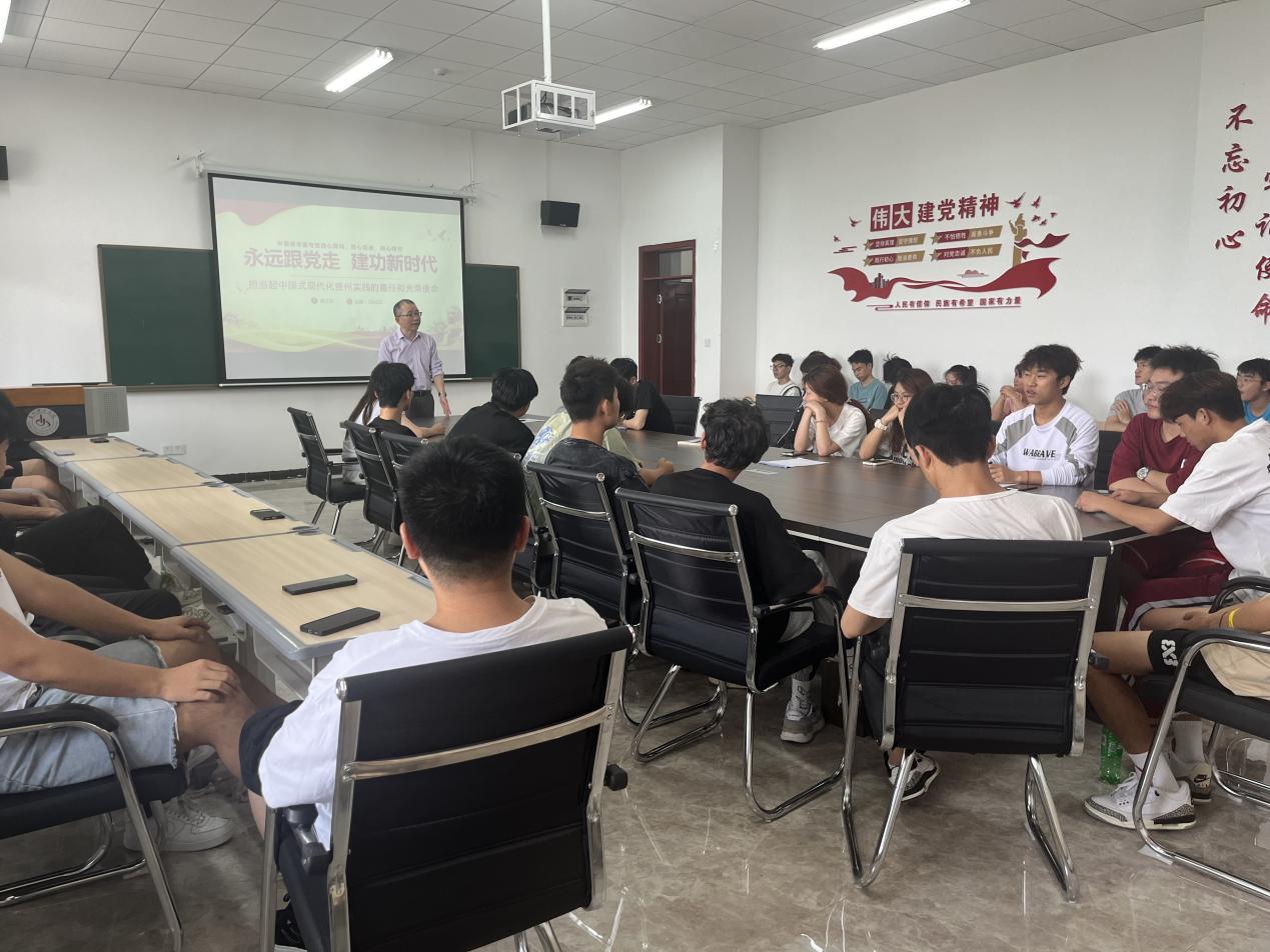 本网讯(交通工程学院 图/文 杨顺菊)2024年5月23日下午,交通工程学院在敏行楼5楼党员活动室举办了主题为“永远跟党走 建功新时代”的道德讲堂活动,本次活动由交通工程学院党总支书记黄念庆主讲,交通232班全班学生参加。