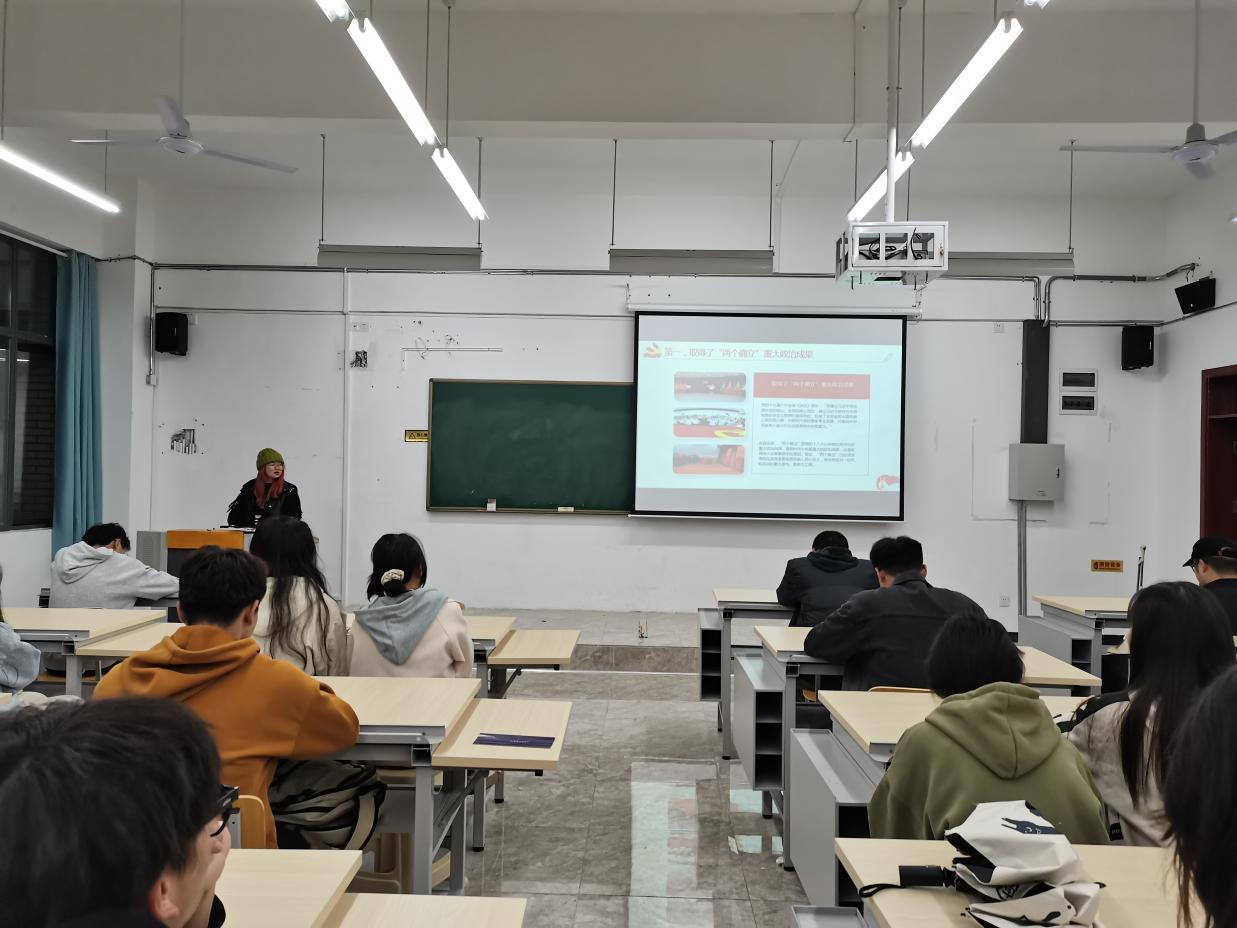 (本网讯 交通工程学院 图文/沈冬冬 高晓晓)为贯彻落实习近平总书记和党中央重要决策部署,认真谋划、深入开展面向广大团员和青年的主题教育,引导团员和青年认真学习领会习近平新时代中国特色社会主义思想,2023年10月26日晚19点在敏行楼3302,交通工程学院大学生宣讲团成员沈冬冬开展“学习二十大、永远跟党走、奋进新征程”宣讲活动,以“高举旗帜,走向复兴——新时代十年的历史性变革”为宣讲主题。城规211班、交通233班全体同学参与。