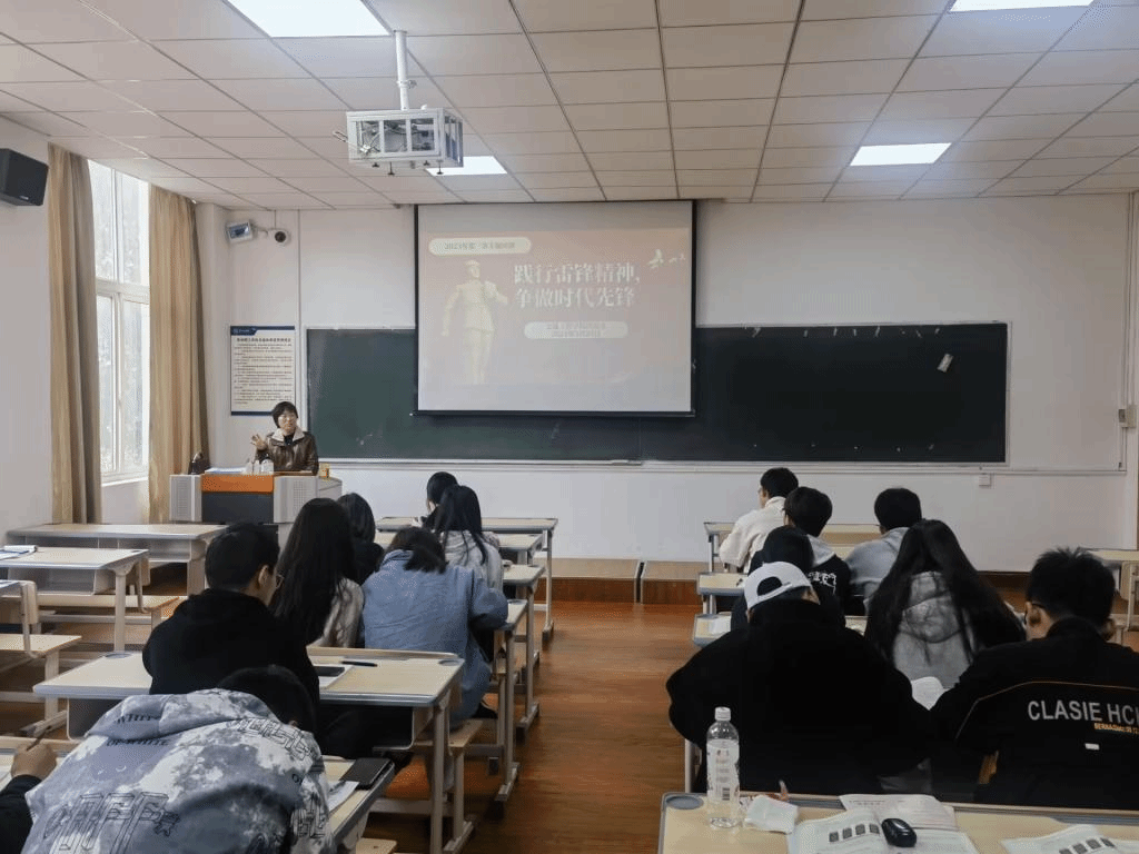 本网讯(交通工程学院 图文/于博洋)为大力弘扬雷锋精神,深入学习雷锋爱党爱国的朴素情怀,把对党、对国家、对人民的忠诚转化为干事的热情,深入学习雷锋助人为乐的优秀品质,形成时时做好事,处处学雷锋的良好风气。2023年3月27日,交通工程学院团总支书记苏利荣在2-207教室开展“弘扬雷锋精神、争做时代青年”主题团课,交通223班全体同学参加。
