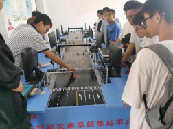 在交通管理与控制实验室。葛鹏向同学们介绍了该实验室的信号交叉口模型、智能物联网实验箱及配套软件。同学们兴趣十分浓厚,不满足于静态展示,于是由老师现场开机演示,满足大家好奇心同时进一步激发了同学们对专业课的兴趣。
