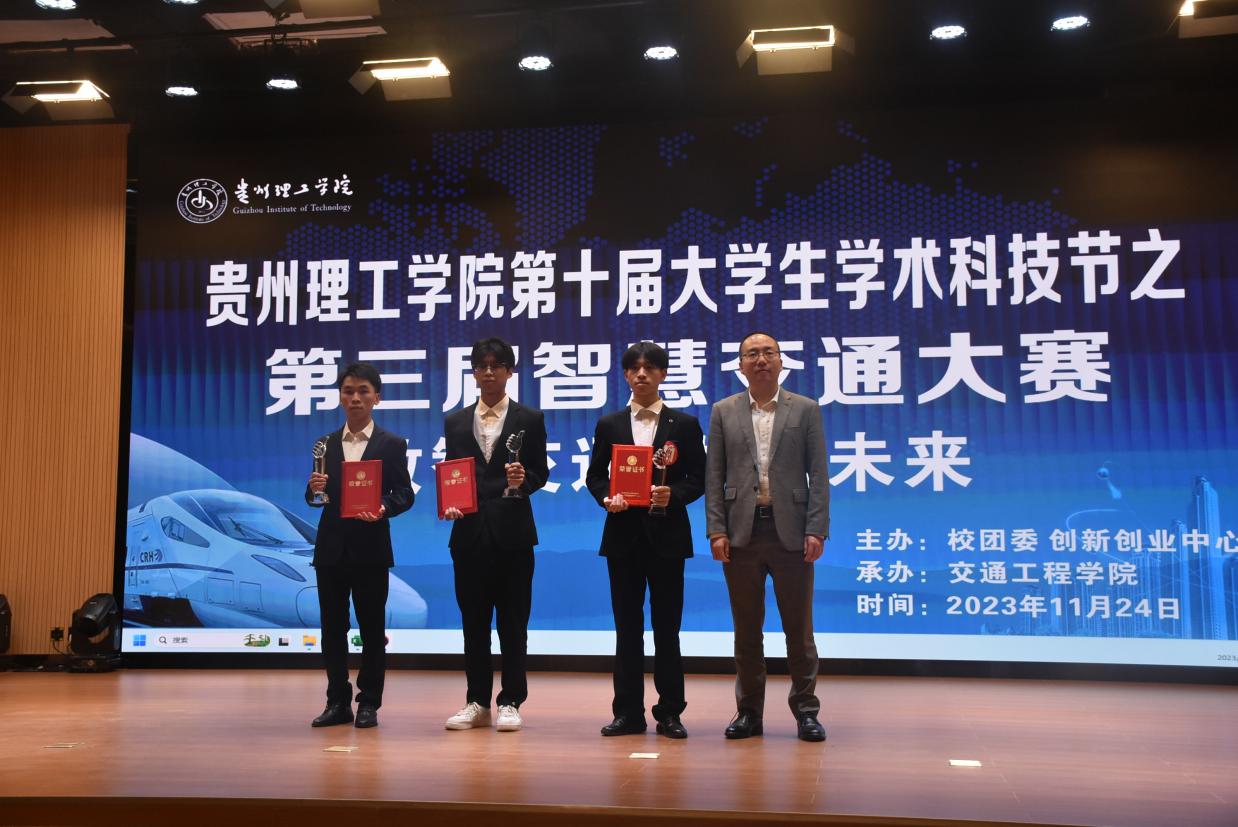 (本网讯 交通工程学院 图文/汪大程)为培养广大学生的科学精神,提升大学生创新能力和逻辑思维能力,2023年11月24日贵州理工学院第三届智慧交通大赛在小礼堂举行。大赛邀请贵州道坦坦科技股份有限公司副总经理、高级工程师孙焕钦、贵州智诚科技有限公司总经理、高级工程师沈志勇、贵阳市交通发展研究中心副主任、高级工程师何莉、贵州省交通规划勘察设计研究院股份有限公司高级工程师刘国盼、贵州理工学院交通工程学院交通工程专业教研室主任正高级工程师高丽5名专家担任评委。党总支书记黄念庆、院长张文利、副院长黄政及交通学院全体教师、350余名学生观看比赛。交通231班黄家乐担任大赛主持人。