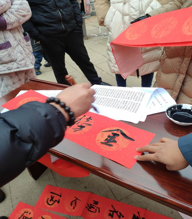 13-14日,社区里满是喜庆的氛围社区工作人员和志愿者如火如荼开展了庆祝元宵节创作春联活动,作为志愿者,陈春参与其中,协助书法老师们准备笔墨纸砚,邀请居民们参与。活动现场,书法老师们挥毫泼墨,一幅幅寓意吉祥的对联跃然纸上。“福星高照全家福,春光耀辉满堂春”,“春临大地百花艳,节至人间万象新”,毛笔在纸上缓缓游走,墨香渐渐弥漫开来。每一笔每一划都饱含着对新年的美好期许。居民们围在一旁,挑选自己心仪的对联,脸上洋溢着幸福的笑容。志愿者们帮忙晾晒写好的对联,将一份份祝福传递给大家通过书写春联表达了对祖国的热爱和对人民幸福生活的美好祝愿。