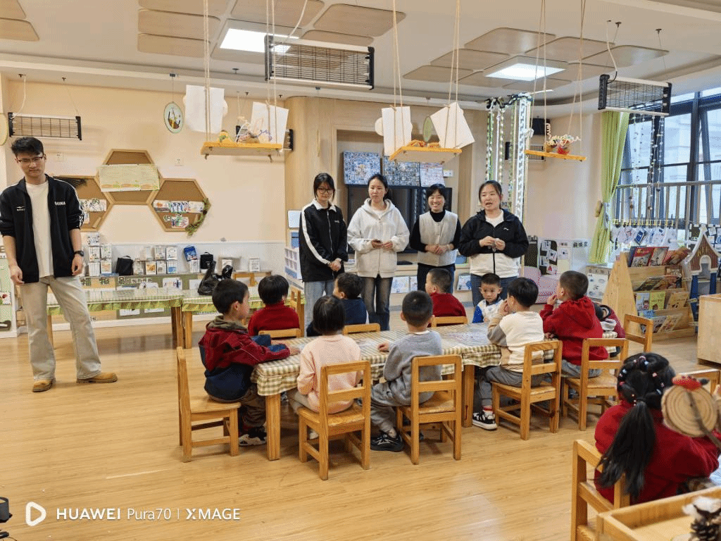 (本网讯 交通工程学院 图文/朱家果)春回大地,万物复苏,大自然披上了绚丽的色彩,处处洋溢着生机与活力。为了让孩子亲近自然,感受春天的美好,交通工程学院马永欣、朱家果、胡卓阳、曾禹评四名志愿者于2025年4月24日下午前往贵州师范大学贵安新区附属幼儿园开展“寻找春天”志愿服务活动,带领孩子们踏上一场充满惊喜与欢乐的春日探索之旅。