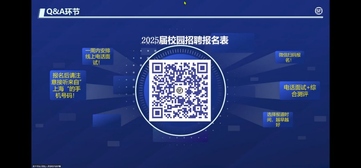 招聘宣讲会上,公司人力资源部曹经理创新采用线上实时屏幕共享形式,全方位展示了公司的智能化设施,包括自动化分拣中心、跨境数字清关系统等,让屏幕另一端的毕业生们仿佛身临其境,直观感受到公司的先进技术和高效运营模式。随后,曹经理详细介绍了国际货运专员、智慧仓管系统工程师、物流算法优化师三类核心岗位需求,为毕业生们明确了职业发展方向。