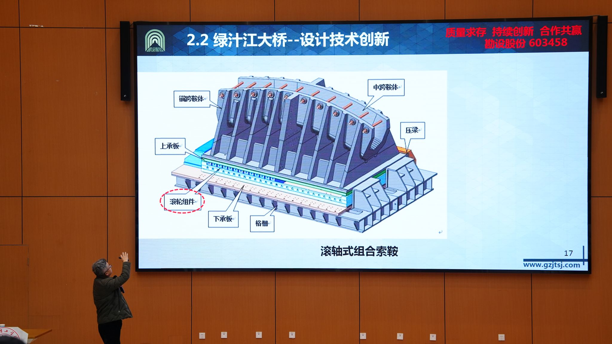 杨健以《山区峡谷桥梁设计经典案例》为主题,结合绿汁江大桥、峰林大桥、开州湖大桥等典型工程,系统讲解了悬索桥在复杂地形下的设计创新与施工挑战,讲座内容贴近工程实际,生动展现了我省在交通基础设施建设中的技术实力,清晰呈现交通工程领域的发展趋势与创新方向。