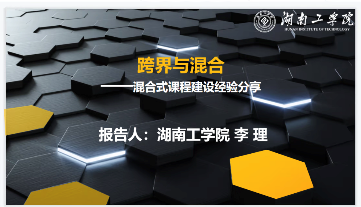 湖南工学院李理教授以“跨界与混合——混合式课程建设经验分享”为主题,围绕混合式课程建设的“一三一”要诀,从“一网”(内容资源网)、“三合”(跨界融合、学做合一、趣用结合)、“一图”(认知线索图)等方面对课程建设进行讲解。